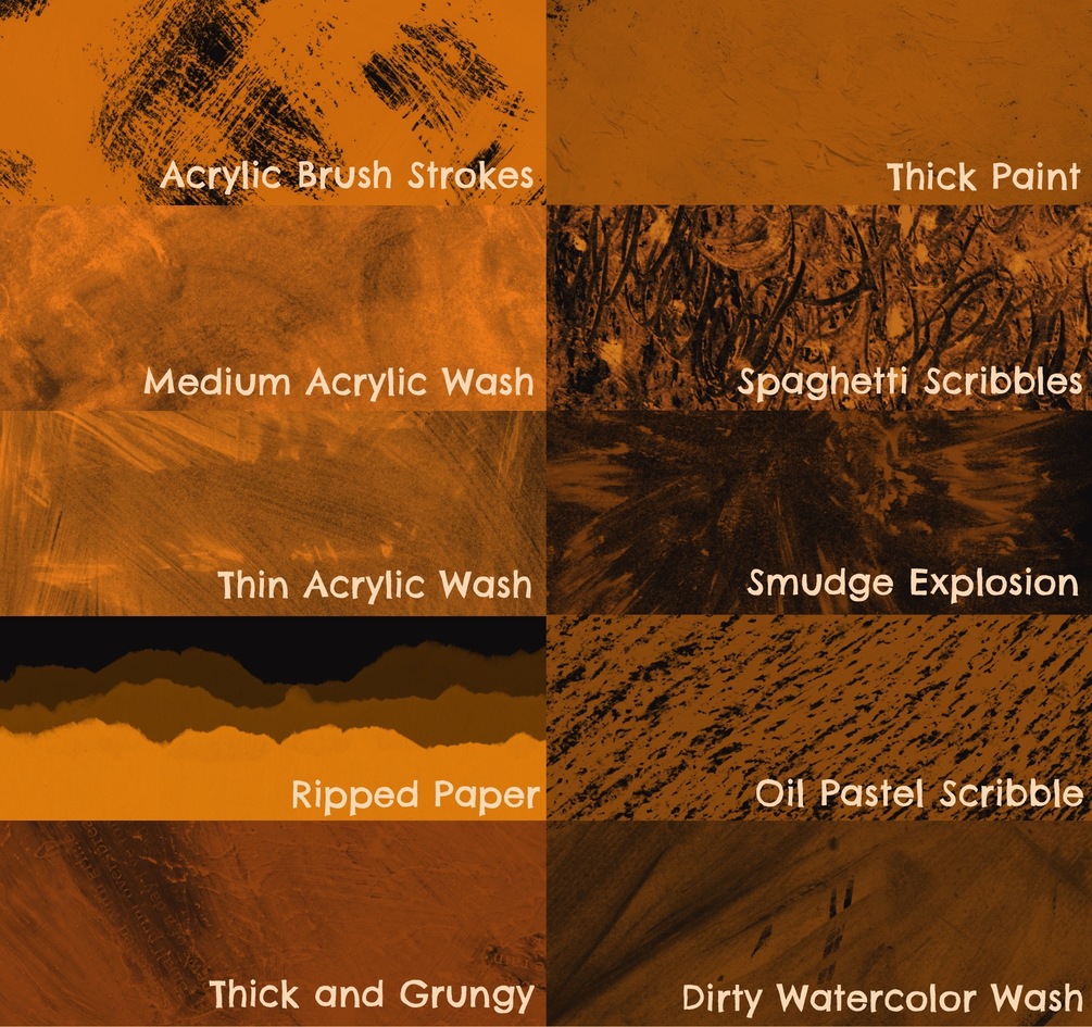 This set includes: 10 Wash Stamps, 35 Texture Stamps, and 20 Texture Brushes